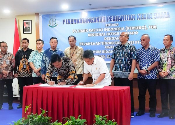 MANADO – PT Bank Rakyat Indonesia (Persero), Tbk Regional Office Manado melakukan penandatanganan Perjanjian Kerjasama dengan Kejati Sulut tentang Penanganan Masalah Hukum Bidang Perdata dan Tata Usaha Negara (PTUN) di Swissbel Hotel Maleosan Manado, Jumat(23/8/2024).