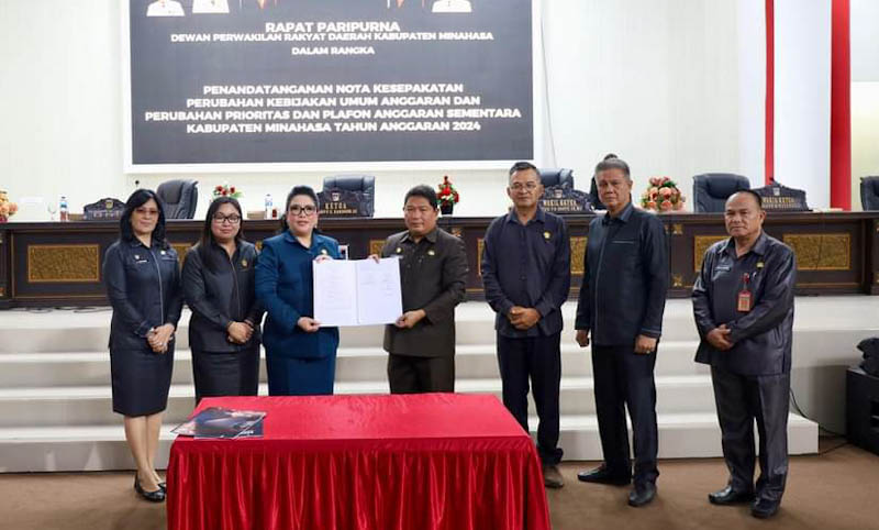 Minahasa – Dewan Perwakilan Rakyat Daerah (DPRD) Kabupaten Minahasa menggelar Rapat Paripurna Penandatanganan Nota Kesepakatan Perubahan KUA-PPAS tahun 2024, bertempat di Ruang Sidang Kantor DPRD Minahasa, Rabu (28/8/2024).