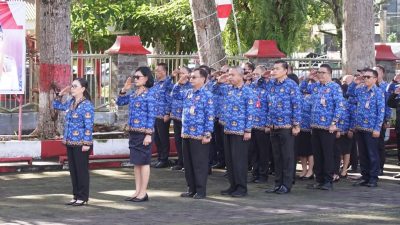 Minahasa- Bupati Minahasa, Robby Dondokambey, SSi, MAP, bertindak sebagai pembina dalam Apel Korpri yang berlangsung di Halaman Kantor Bupati Minahasa pada Senin (17/3/2025).