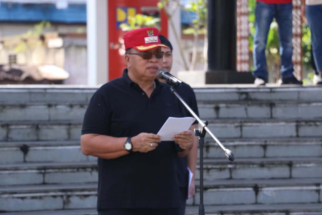 Minahasa, Bupati Minahasa, Robby Dondokambey SSi, MAP, memimpin langsung Apel Kerja Bakti yang dilaksanakan di Lapangan Dr. Sam Ratulangi, Tondano, Jumat (11/4). Kegiatan ini menjadi bagian dari komitmen Pemerintah Kabupaten Minahasa dalam menjaga kebersihan dan kelestarian lingkungan.