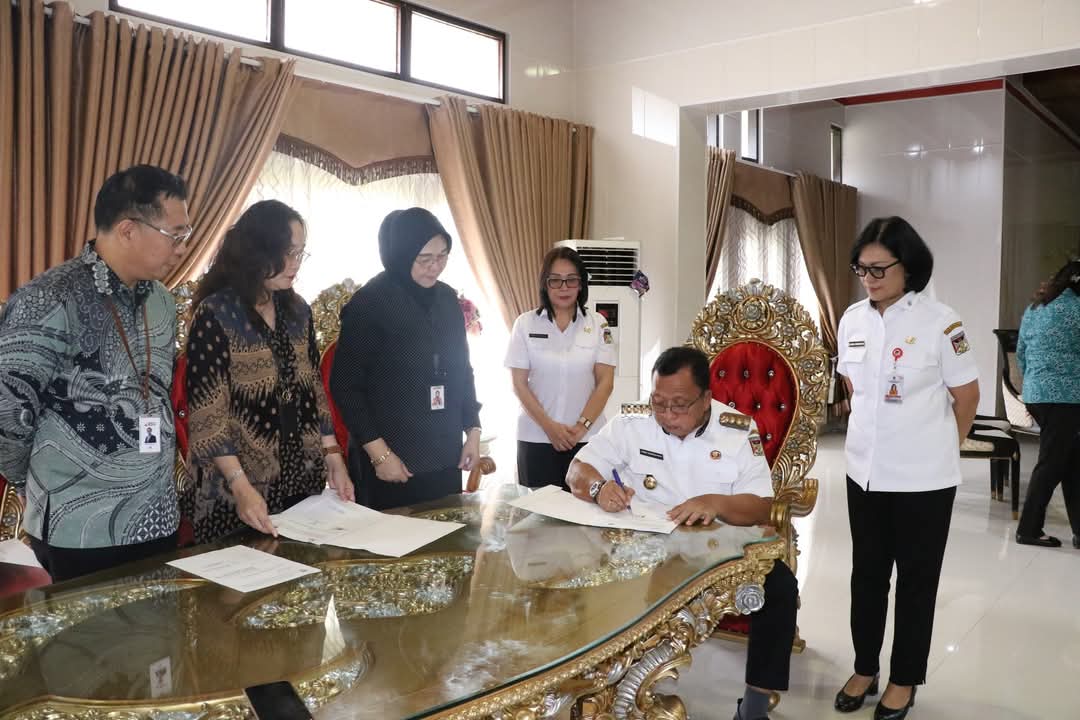 Penandatanganan MoU tersebut dilakukan langsung oleh Bupati Minahasa, Robby Dondokambey, S.Si, MAP, didampingi oleh Sekretaris Daerah Dr. Lynda D. Watania, MM, M.Si, Asisten I Drs. Reviva Maringka, M.Si, Asisten III Dr. Vicky Tanor, SPi, M.Si, serta Kepala BPKAD Joice Pua, SE.