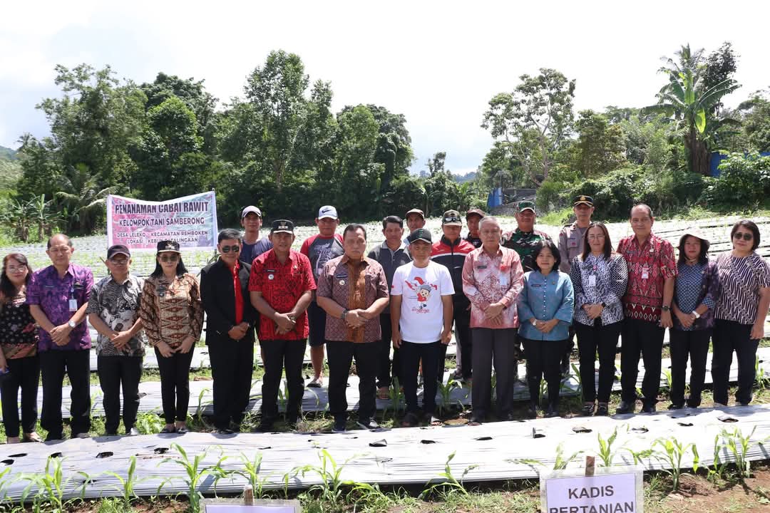 MINAHASA – Bupati Minahasa, Robby Dondokambey SSi MAP, memberikan apresiasi kepada Kelompok Tani (Koptan) Samberong, yang melakukan Gerakan Menanam Cabai Rawit, di Desa Leleko, Kecamatan Remboken, Kamis (8/5/25).