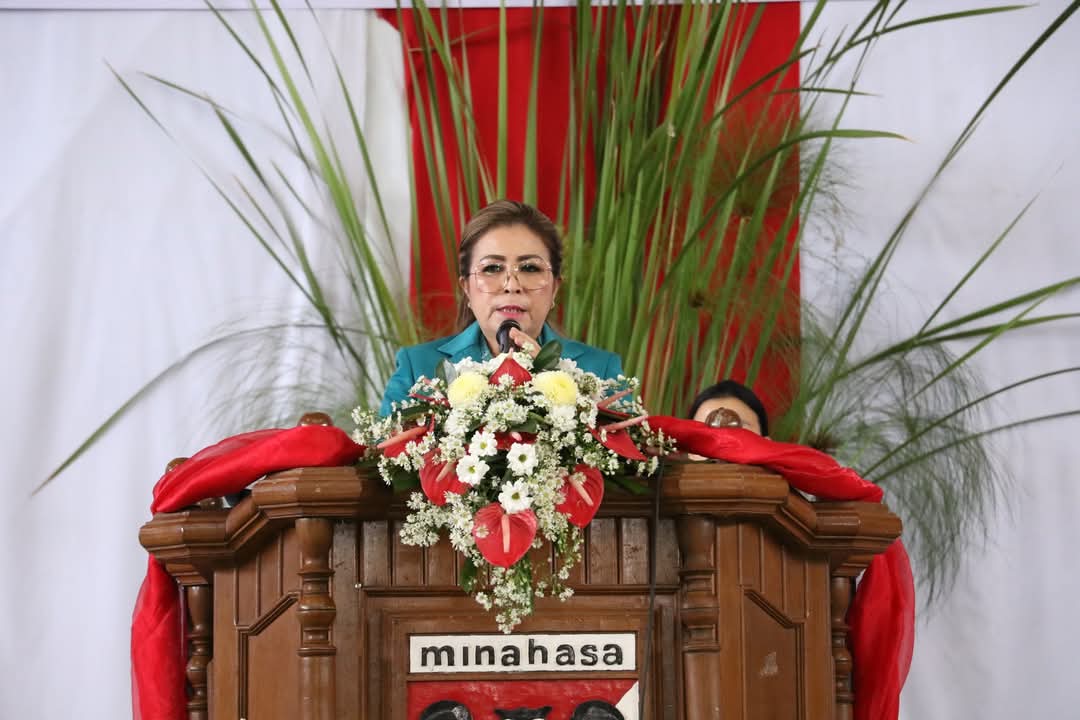 Ketua TP PKK Minahasa, Martina Lengkong, SE, saat membacakan sambutan Ketua Umum TP PKK menyampaikan, sebagai mitra pemerintah, PKK memiliki peran strategis dalam mewujudkan kesejahteraan keluarga dan masyarakat. 10 Program Pokok PKK yang mencakup pendidikan, kesehatan, sandang, pangan, hingga lingkungan telah terbukti memberikan dampak nyata bagi kesejahteraan masyarakat.