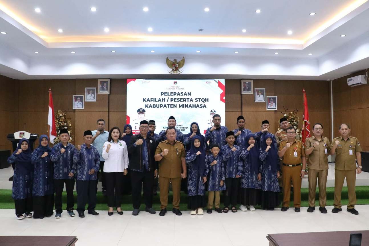 Minahasa- Bupati Minahasa Robby Dondokambey, S.Si., M.A.P., secara resmi melepas kafilah atau peserta Seleksi Tilawatil Qur’an dan Hadist (STQH) Kabupaten Minahasa untuk mengikuti ajang seleksi tingkat Provinsi Sulawesi Utara. Acara pelepasan dilaksanakan di Ruang Sidang Kantor Bupati Minahasa, Selasa (10/6/2025).