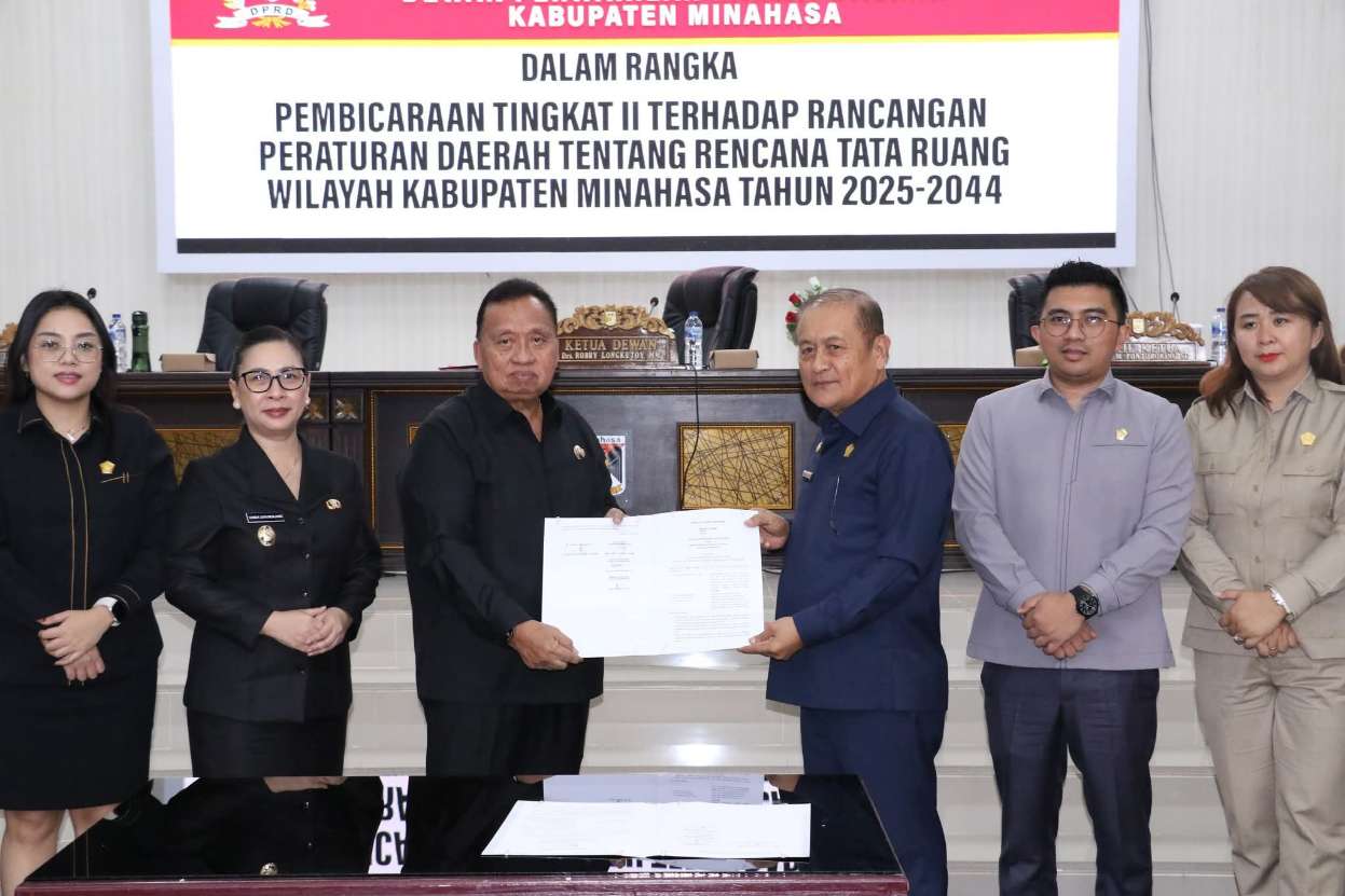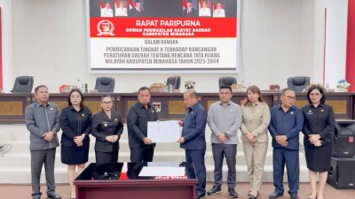 Minahasa – Dewan Perwakilan Rakyat Daerah (DPRD) Kabupaten Minahasa mengesahkan Rancangan Peraturan Daerah (Ranperda) tentang Rencana Tata Ruang Wilayah (RTRW) Kabupaten Minahasa Tahun 2025-2044, dalam rapat paripurna yang di gelar di ruang sidang DPRD Tondano, Selasa (17/6/2025).