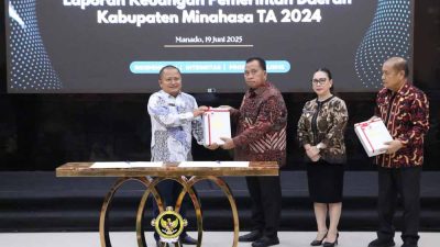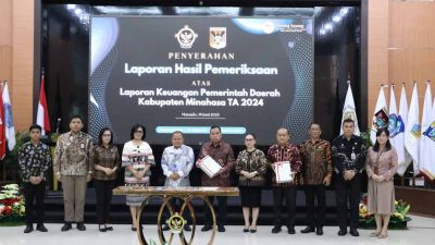 Manado – Pemerintah Kabupaten Minahasa kembali menorehkan prestasi gemilang dengan meraih opini Wajar Tanpa Pengecualian (WTP) untuk ke-11 kalinya secara berturut-turut atas Laporan Keuangan Pemerintah Daerah (LKPD) Tahun Anggaran 2024.