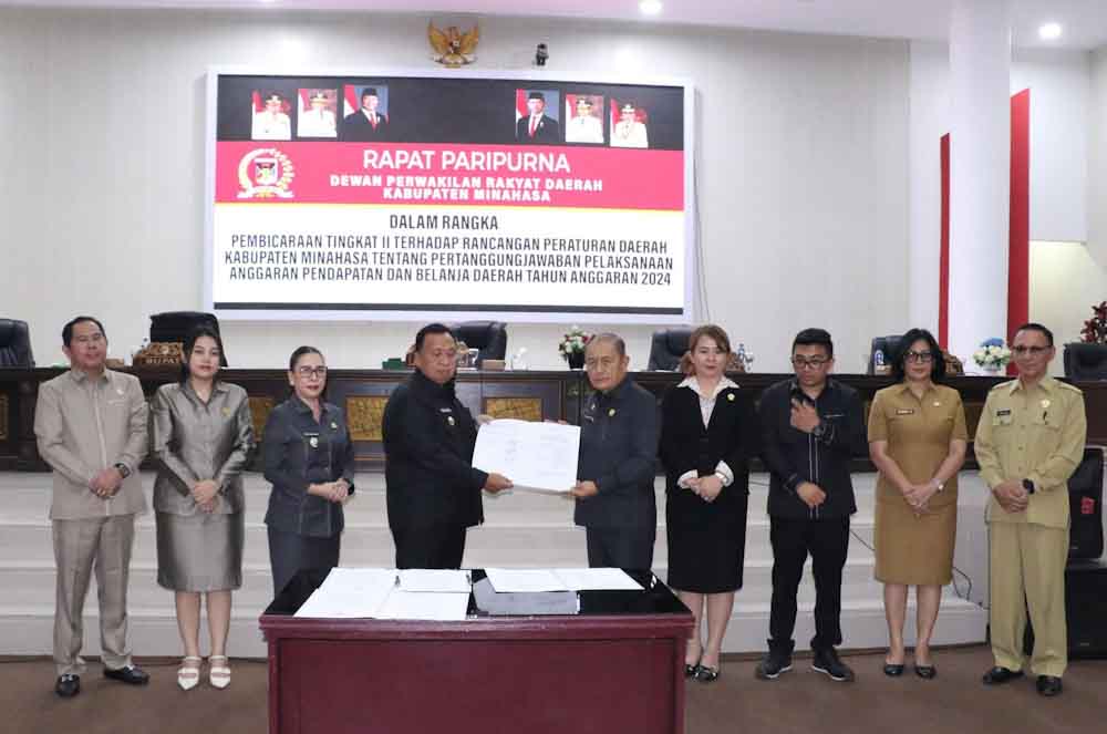 Minahasa – Dewan Perwakilan Rakyat Daerah (DPRD) Kabupaten Minahasa menyetujui Rancangan Peraturan Daerah (Ranperda) tentang Pertanggungjawaban Pelaksanaan Anggaran Pendapatan dan Belanja Daerah (APBD) Tahun Anggaran 2024.