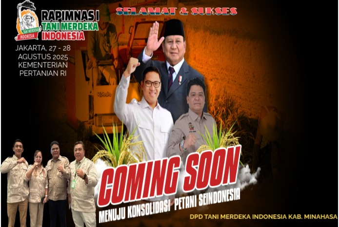 “Kami dari pengurus DPD Tani Merdeka Indonesia Kab. Minahasa mendukung penuh Rapimnas di Jakarta. Kehadiran kami adalah bukti Tani Merdeka adalah organisasi solid, siap bergerak bersama mendukung program nasional di bidang pertanian,” kata Maykel Manorek Selaku Ketua DPD TMI Kab. Minahasa