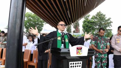 Ibadah dipimpin Pdt. Dr. Adolf Wenas M.Th., yang dalam khotbahnya berpesan agar Minahasa menjadi pilar penjaga perdamaian.