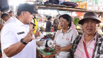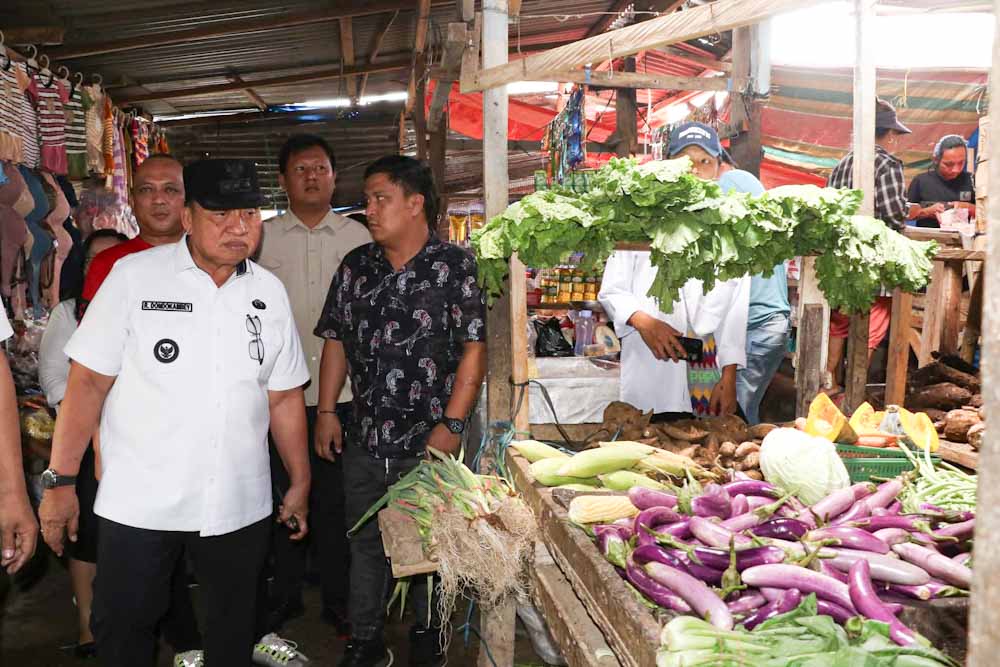 Minahasa – Guna memastikan stabilitas harga bahan pokok (Bapok) menjelang akhir tahun, Bupati Minahasa Robby Dondokambey SSi MAP, melakukan inspeksi mendadak (sidak) di Pasar Sonder, Desa Kauneran Satu, Kecamatan Sonder, Rabu (08/10).