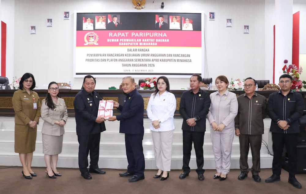 Minahasa — Dewan Perwakilan Rakyat Daerah (DPRD) Kabupaten Minahasa menggelar Rapat Paripurna dalam rangka Penyampaian Rancangan Kebijakan Umum Anggaran (KUA) serta Rancangan Prioritas dan Plafon Anggaran Sementara (PPAS) APBD Kabupaten Minahasa Tahun Anggaran 2026, bertempat di Ruang Sidang DPRD, Senin (17/11/2025).