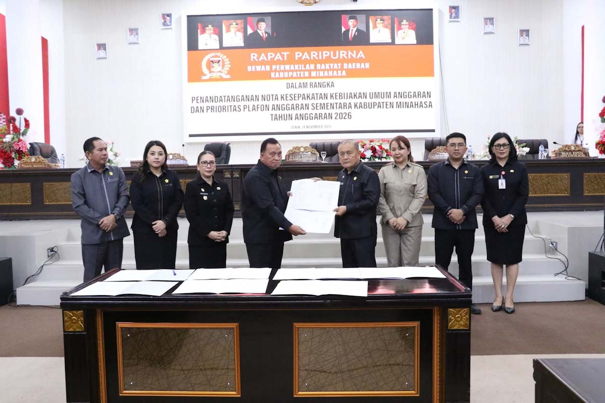 Minahasa – DPRD Kabupaten Minahasa dan Pemkab Minahasa akhirnya menandatangani Nota Kesepakatan Kebijakan Umum Anggaran (KUA) serta Prioritas Plafon Anggaran Sementara (PPAS) APBD Tahun Anggaran 2026.
