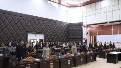 Rapat Paripurna dipimpin oleh Ketua DPRD Robby Longkutoy, didampingi Wakil Ketua Putri Pontororing dan Adri Kamasi serta Sekretaris DPRD Riany Suwarno.