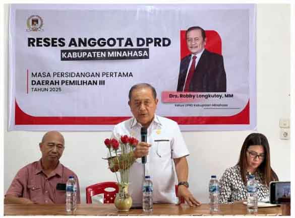 Minahasa – Ketua DPRD Kabupaten Minahasa Robby Longkutoy, MM melaksanakan reses anggota DPRD Kabupaten Minahasa masa persidangan pertama Tahun 2025 untuk Dapil III, yang dilaksanakan di Desa Sumarayar Kecamatan Langowan Timur dan turut dihadiri masyarakat dari berbagai wilayah Langowan Raya, Rabu (26/11/25).