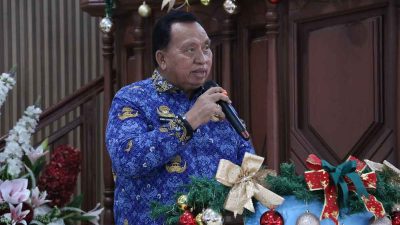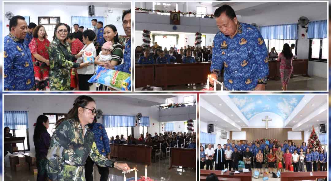 Minahasa – Suasana penuh sukacita menyelimuti Jemaat GMIM Petra Sawangan saat menjadi lokasi pertama Safari Natal Pemkab Minahasa, Senin (1/12/2025). Bupati Minahasa, Robby Dondokambey, bersama Ketua TP PKK, Martina Lengkong, turut hadir dalam ibadah yang penuh khidmat.