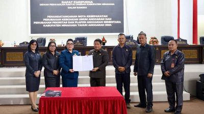 Bupati Jemmy Kumendong dan Ketua Glady Kandouw usai; Penandatanganan Kesepakatan KUA dan PPAS Tahun 2024
